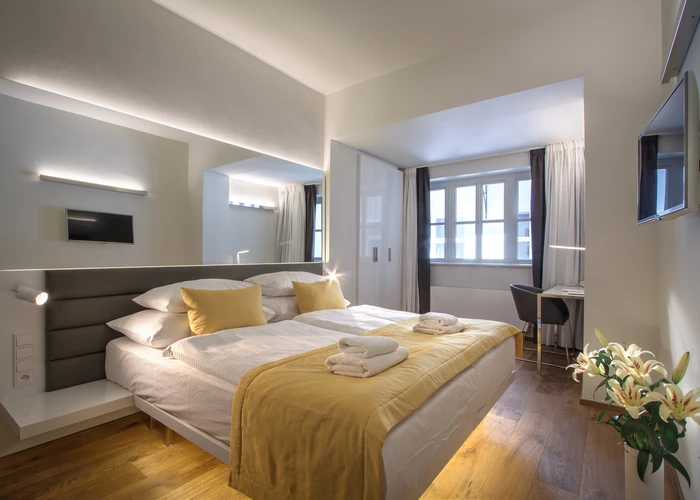 Zrenovovaný pokoj, který kombinuje moderní design a komfort s důrazem na moderní technologie.