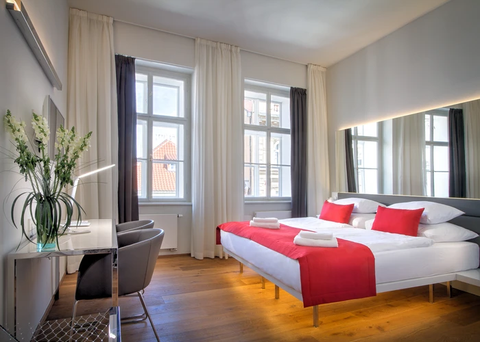 Pokoje se širokou a pohodlnou manželskou postelí či oddělenými lůžky, moderní koupelnou a nadstandardní výbavou. Samozřejmostí je neomezený přístup do Executive Lounge.